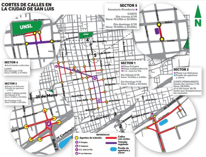 Comunicaron los cortes de calle que tendrán efecto como parte del 35° Encuentro Plurinacional de Mujeres, Lesbianas, Trans, Travestis, Bisexuales, Intersexuales y No Binaries, el cual tendrá lugar en la ciudad de San Luis desde este viernes 7 de octubre al lunes 10.