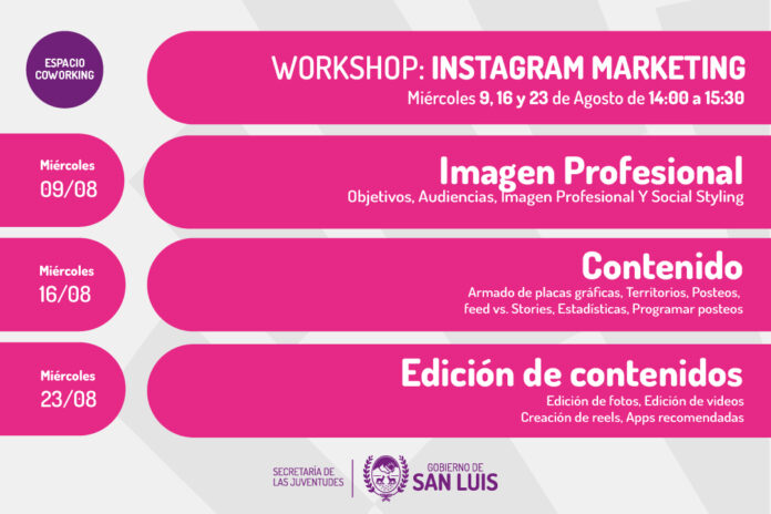 El objetivo del workshop es que los emprendedores y emprendedoras puedan impulsar su negocio, profesión o marca personal a través de Instagram. Quienes asistan a las tres clases recibirán un certificado que avale la capacitación. Para inscribirse es a través del formulario de Google: http://bitly.ws/Qaa3.