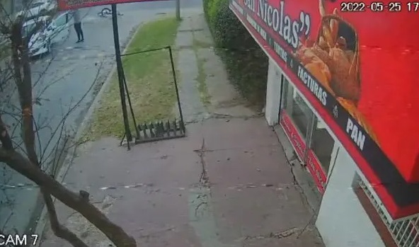 En las imágenes se observa cómo el cantante, a bordo de su motocicleta, es impactado por un Peugeot 208 en el cruce de Luis Braille y Solís, en la localidad bonaerense de Florencio Varela.