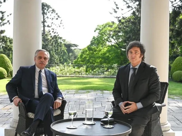 “El Presidente Alberto Fernández recibió esta mañana al Presidente electo, Javier Milei, El encuentro se llevó adelante en la residencia presidencial de Olivos, para dar inicio al proceso de transición institucional entre los equipos designados por ambos en las distintas áreas de gobierno”, señaló un comunicado difundido por la portavoz de la Presidencia, Gabriela Cerruti, que fue difundido en las redes sociales.