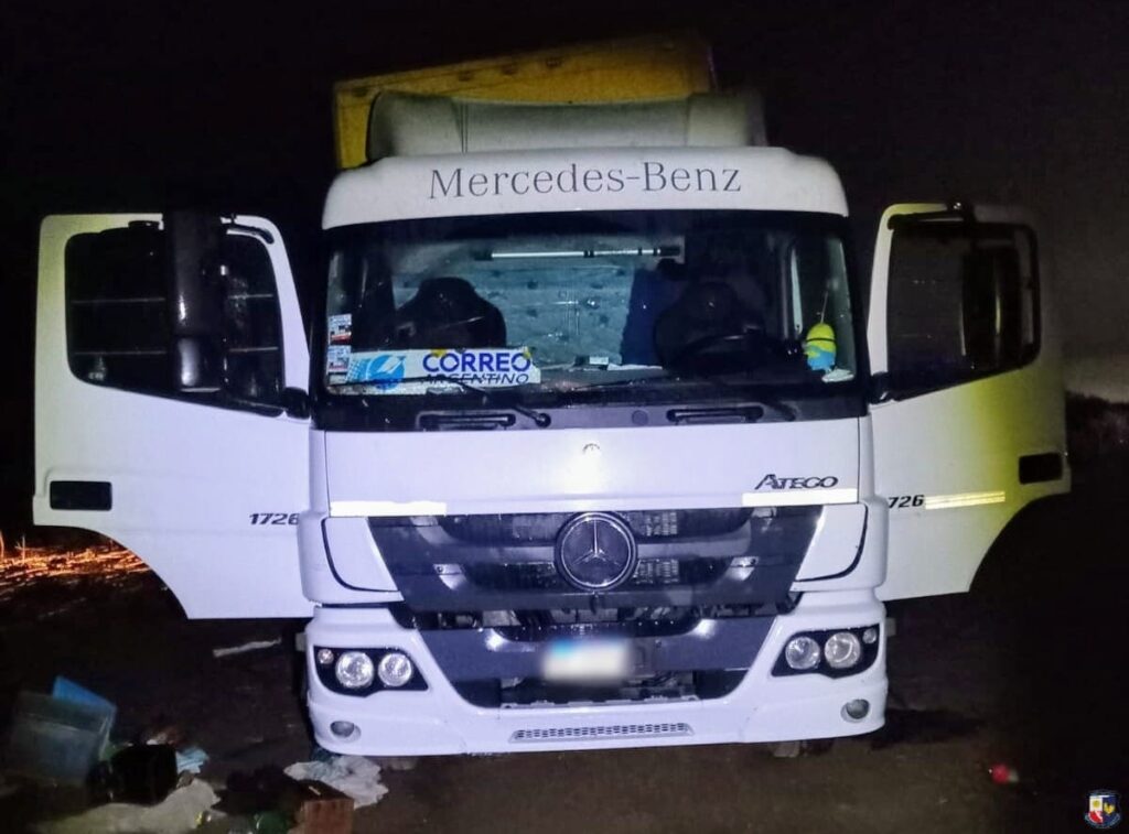 Minutos después, el camión fue encontrado en un camino rural al costado de Circunvalación (entre la Autopista de las Serranías Puntanas y la Autopista 55), al norte de la ciudad de Villa Mercedes, ya que desde el sistema de monitoreo y seguridad del rodado se había realizado el corte de flujo de combustible, quedando el camión en ese lugar.