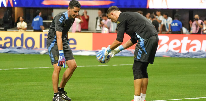 Emiliano Martínez toma la pelota con sus dos manos y la hace picar en el área del estadio Mercedes Benz de Atlanta, minutos antes de empezar el partido debut en la Copa América ante Canadá. La preocupación por el estado del campo de juego -fundada en las declaraciones de los futbolistas y el propio entrenador de la Selección Argentina– se trasladó a Nueva Jersey y este lunes una imagen similar se repitió: parte del cuerpo técnico de la Albiceleste llegó cerca del mediodía al estadio MetLife para hacer la misma prueba. Pero no es el único punto que tiene en cuenta Lionel Scaloni, que en conferencia de prensa intentó frenar la polémica.