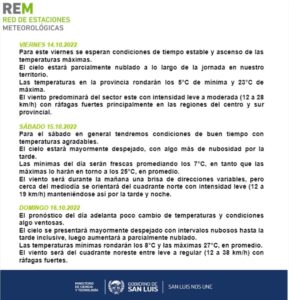 HomeClimaAumento de la temperatura con condiciones de tiempo estable Clima Aumento de la temperatura con condiciones de tiempo estable Por Redacción 14 octubre, 2022 TagsPortada Previous articleLa Municipalidad continúa con la adquisición de nuevas maquinarias, vehículos y equipamientoNext articleLa AFIP subastará 151 toneladas de granos que fueron decomisados Noticias Relacionadas Clima La semana comienza con mañanas frías y chance de heladas en varias localidades 6 octubre, 2025 Clima La semana termina con temperaturas de verano y pronóstico de un fin de semana inestable 3 octubre, 2025 Clima Octubre comienza con abundante nubosidad y temperaturas agradables 1 octubre, 2025 mas leido “San Luis es una de las dos primeras provincias con el índice más alto de donantes” 13 octubre, 2025 Advierten que la Tierra alcanzó el primer “punto de inflexión climático” global por la desaparición de los arrecifes de coral 13 octubre, 2025 Tras las fuertes lluvias, cómo estará el tiempo en el AMBA durante el inicio de la semana 13 octubre, 2025 Un testigo del doble femicidio en Córdoba brindó detalles estremecedores del accionar de Pablo Laurta el día del hecho 13 octubre, 2025 Load more