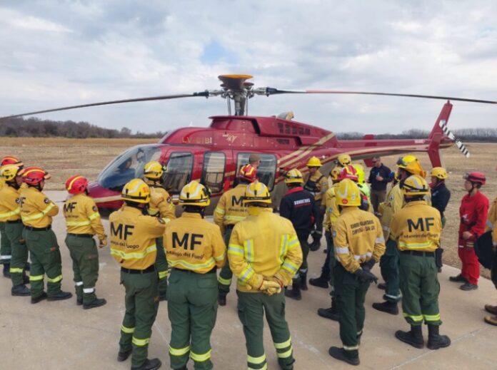 Brigadistas y bomberos de toda la provincia formaron parte de la capacitación denominada “Uso y seguridad de medios aéreos y entrenamiento en dirección de tiro”, que se desarrolló en el Aeropuerto Internacional del Valle del Conlara y que fue dictada por instructores del Servicio Nacional de Manejo del Fuego.