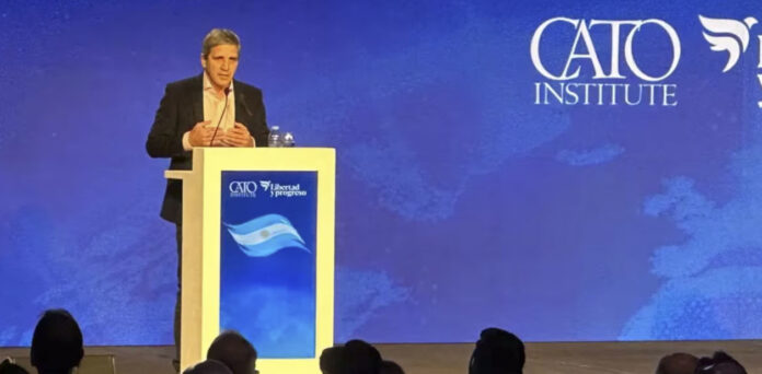 Durante la cumbre organizada también por el CATO institute, un think tank conservador fundado por el economista admirado por el Presidente, Murray Rohtbard, Caputo advirtió que la herencia recibida fue una combinación de “lo peor” del Rodrigazo, la hiperinflación de Alfonsín y Menem y la crisis del 2001. “Teníamos un país con cáncer fiscal y metástasis monetaria, financiera, cambiaria e institucional, un paciente más cerca de pasar al otro lado”, disparó.