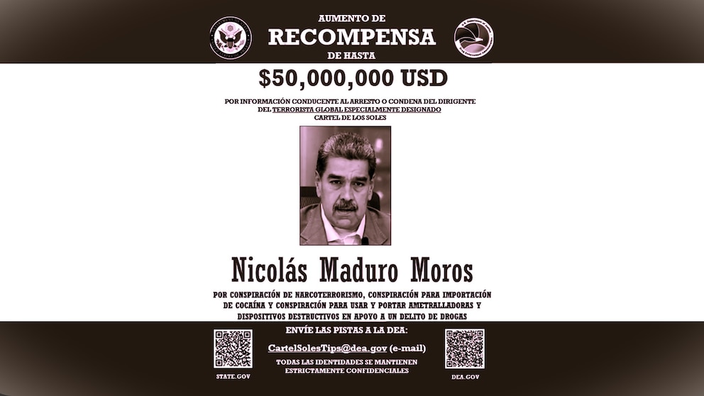 Pocos días después, el 7 de agosto, los Estados Unidos anunciaron que elevaban la recompensa para aquel que aportara información que pudiera dar con Maduro hasta un valor récord: 50 millones de dólares. La cifra representa bastante más de lo que alguna vez la Casa Blanca ofreció por Osama Bin Laden, enemigo número uno y el autor intelectual del ataque a las Torres Gemelas el 11 de septiembre de 2001.