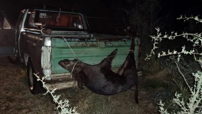 Efectivos de la División Policía Ecológica y Ambiental, dependiente de la Dirección General de Policía Caminera y Seguridad Vial, secuestraron una pieza de jabalí y un cuchillo para la práctica de caza en la madrugada de este lunes.