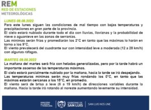 HomeClimaComienza la semana con bajas temperaturas, lluvias y probables nevadas Clima Comienza la semana con bajas temperaturas, lluvias y probables nevadas Por Redacción 8 agosto, 2022 TagsPortada Previous articleSergio Massa designará al economista Gabriel Rubinstein como su segundo en el ministerioNext articleSergio Massa confirmó los cambios en la Secretaría de Energía: se va Darío Martínez e ingresa Flavia Royón Noticias Relacionadas Clima La semana comienza con mañanas frías y chance de heladas en varias localidades 6 octubre, 2025 Clima La semana termina con temperaturas de verano y pronóstico de un fin de semana inestable 3 octubre, 2025 Clima Octubre comienza con abundante nubosidad y temperaturas agradables 1 octubre, 2025 mas leido Un camión volcó en la ruta 147: el conductor resultó ileso 10 octubre, 2025 El Carrillo recibió un certificado de la OPS por su labor en vigilancia de infecciones respiratorias 10 octubre, 2025 San Luis: prisión preventiva para un joven acusado de incendiar una vivienda y amenazar a vecinos 10 octubre, 2025 El ministerio de Salud impulsa acciones en toda la provincia para la prevención del cáncer de mama 10 octubre, 2025 Load more