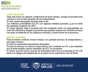 HomeClimaComienza la semana con una amanecer fresco, temperaturas cálidas por la tarde... Clima Comienza la semana con una amanecer fresco, temperaturas cálidas por la tarde y fuertes vientos Por Redacción 29 agosto, 2022 TagsPortada Previous articleEl papa Francisco condenó el asesinato de Daria Dugina en Moscú y provocó un conflicto con UcraniaNext articleSergio Massa designó al nuevo interventor del ENRE Noticias Relacionadas Clima La semana comienza con mañanas frías y chance de heladas en varias localidades 6 octubre, 2025 Clima La semana termina con temperaturas de verano y pronóstico de un fin de semana inestable 3 octubre, 2025 Clima Octubre comienza con abundante nubosidad y temperaturas agradables 1 octubre, 2025 mas leido Un camión volcó en la ruta 147: el conductor resultó ileso 10 octubre, 2025 El Carrillo recibió un certificado de la OPS por su labor en vigilancia de infecciones respiratorias 10 octubre, 2025 San Luis: prisión preventiva para un joven acusado de incendiar una vivienda y amenazar a vecinos 10 octubre, 2025 El ministerio de Salud impulsa acciones en toda la provincia para la prevención del cáncer de mama 10 octubre, 2025 Load more