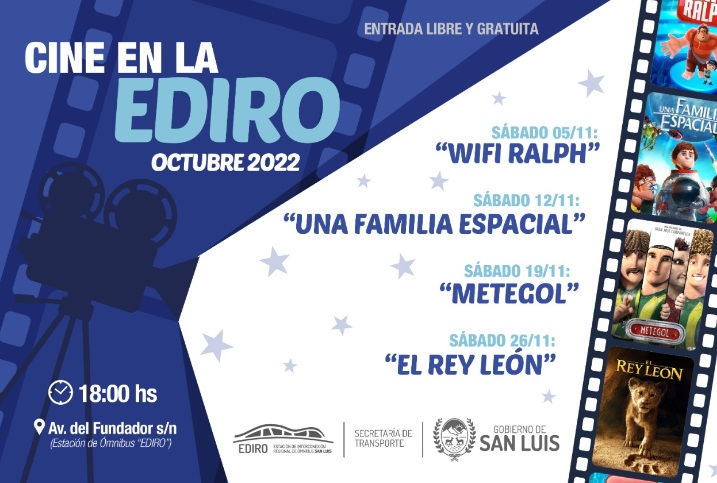 El cine de la Estación de Interconexión Regional de Ómnibus (EDIRO) abre sus puertas para compartir películas entre grandes y chicos. Con entrada libre y gratuita, las funciones se realizan todos los sábados del mes a las 18:00.