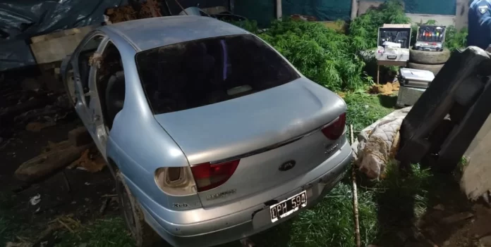 Además de las autopartes que ya habían sido retiradas del auto, en el lugar se secuestraron también tres celulares y 40 plantes de marihuana, según detallaron fuentes policiales.