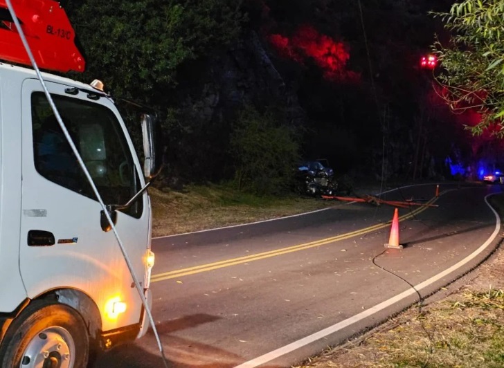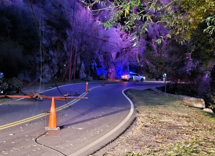 El siniestro provocó además la caída de cables del tendido eléctrico y obligó a reducir la circulación a media calzada en el acceso a la localidad. Personal policial trabaja en la zona para garantizar la seguridad y normalizar el tránsito.