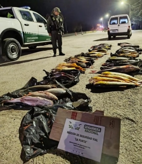 En un operativo de control sobre la Ruta Nacional N°7, personal de la Sección Seguridad Vial “La Punta” de Gendarmería Nacional interceptó un vehículo que transportaba una carga de 70 pescados sin cumplir con las normativas vigentes.