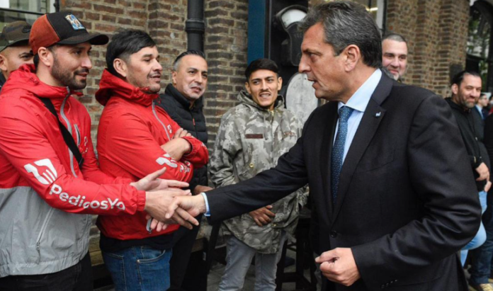 “Lo que pretendemos es que ese trabajador que anda en la moto, en la bici, en la calle repartiendo, no tenga un accidente y se quede sin ingreso, no tenga pérdida del derecho jubilatorio, sino que esté protegido por el Estado”, dijo Massa.