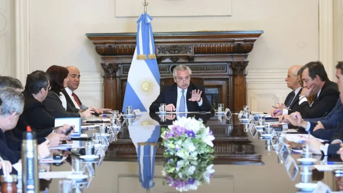 El presidente Alberto Fernández llegó a Balcarce 50 en helicóptero desde la residencia de Olivos después de las 10 y pasó fugazmente por la reunión, donde estuvo alrededor de 15 minutos. Luego se instaló en su despacho. El que avisó que no llegaría, porque tenía temas urgentes que resolver, fue el ministro de Economía, Sergio Massa.