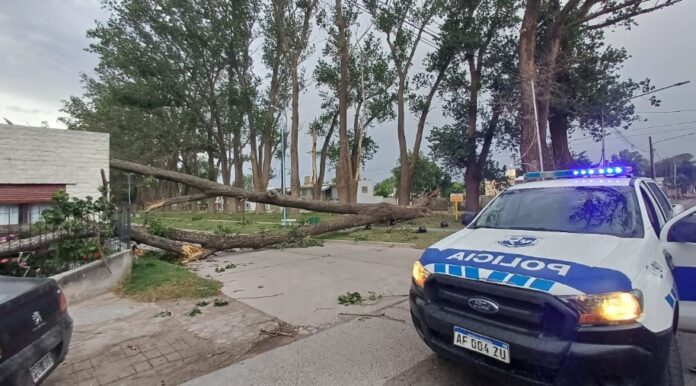En principio se confirmado la voladura de unos 25 techos, hay árboles y postes caídos y fabricas que también se vieron afectadas en sus estructuras por los fuertes vientos.