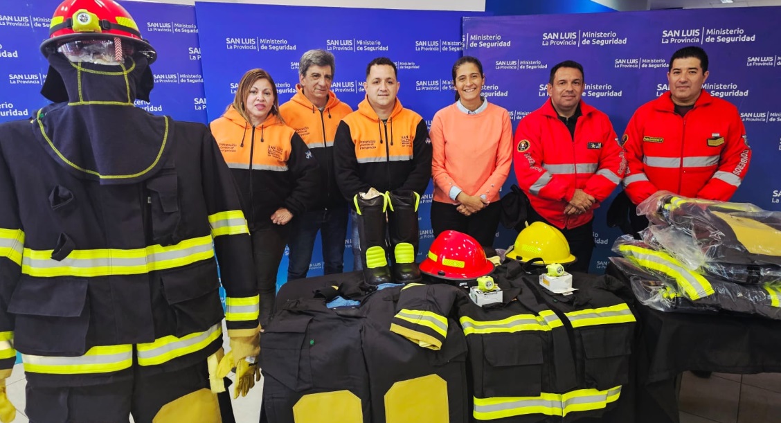 El Gobierno de San Luis, a través del ministerio de Seguridad, realizó este jueves por la tarde la entrega de equipamiento específico para la atención de incendios estructurales. La jefa de la cartera, Nancy Sosa, encabezó la ceremonia que tuvo lugar en el ingreso del edificio ministerial.