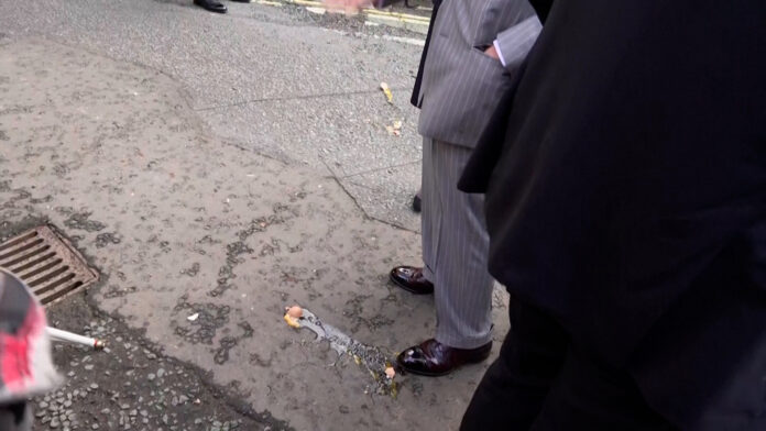 Las imágenes difundidas en las redes sociales mostraban cómo cuatro huevos pasaban volando junto al monarca británico y su esposa y se estrellaban contra el suelo cuando llegaban a una ceremonia tradicional en York. El incidente no pareció afectarles y siguieron con el compromiso.