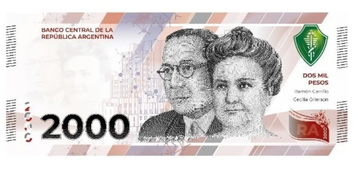 El nuevo billete es un homenaje a la salud. En el anverso tendrá la imagen de Cecilia Grierson, considerada la primera médica argentina, y de Ramón Carrillo, ex ministro de Salud. En el reverso, habrá una imagen de la fachada del Instituto Malbrán.