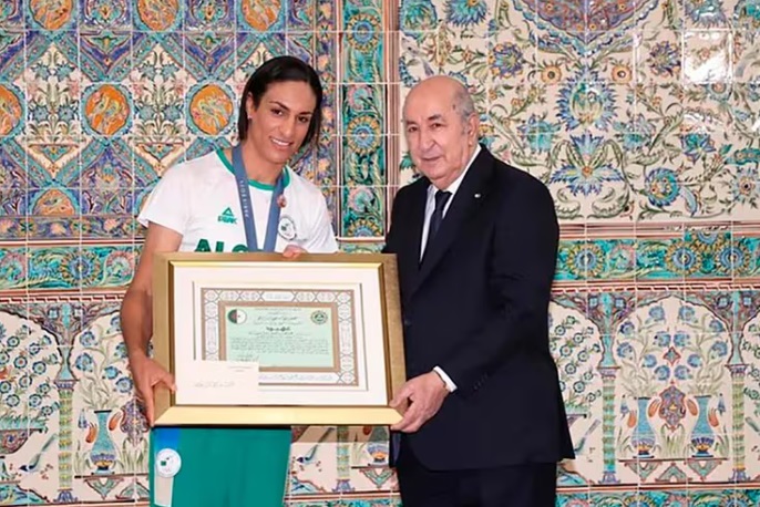 La boxeadora, que se ha convertido en una referente en Argelia, recibió la Orden del Mérito Nacional de parte del presidente de la República, Abdelmadjid Tebboune. “He tenido el honor de ser condecorada”, publicó Khelif con las imágenes del histórico momento para ella.