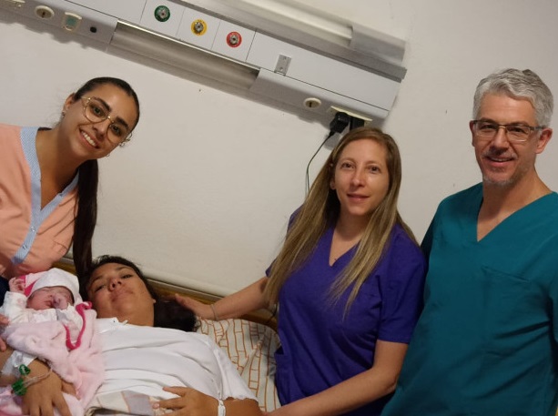 Participaron del parto, los ginecólogos: Federico Giubergia y Paula Palavecino, en anestesia, Sergio Maura; instrumentador: Cristian Garro, instrumentador circular, Cintia García; neo: Lucia Pugliese /Leticia Miranda y la enfermera neo, Adriana Pizarro.