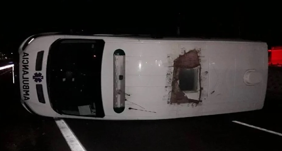 El primer accidente ocurrió en horas de la madrugada, cuando el conductor de una ambulancia perdió el control del vehículo. En esta oportunidad los tres ocupantes, un enfermero, el chofer y una médica sufrieron golpes.