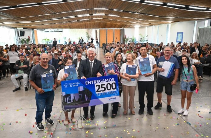 La 45° ceremonia, que significó a su vez alcanzar la cifra de 2.500 beneficiarios en total, fue encabezada como de costumbre por el gobernador Claudio Poggi, quien acentuó la importancia de la escritura en tanto “le da seguridad jurídica y tranquilidad a la familia, valoriza el hogar en caso de querer venderla, sirve como garante, para obtener préstamos”. Por ese motivo, el Mandatario aseguró que este Programa respondió a una política de Estado prioritaria que encomendó al asumir, apuntando a alcanzar a la mayor cantidad de familias posibles.