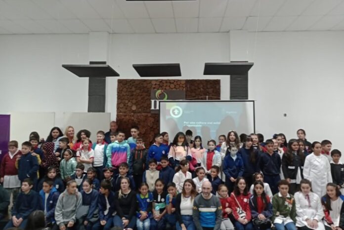 Tras haberse capacitado docentes y directivos, este jueves fue el turno de más de 200 estudiantes, tanto de nivel primario como de secundario. Nuevamente la charla estuvo a cargo del personal de la Agencia Nacional de Seguridad Vial y participaron funcionarios de los ministerios de Educación y Seguridad de la provincia de San Luis.