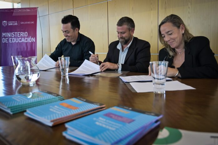 El ministro de Seguridad, Luciano Anastasi y la ministra de Educación, Eugenia Cantaloube, firmaron un convenio con la Agencia Nacional de Seguridad Vial (ANSV) para la implementación del Plan Federal de Educación Vial en las escuelas de la provincia. En representación del organismo Nacional el acuerdo fue rubricado por el director del Centro de Formación en Políticas de Seguridad Vial, Sebastián Kelman.
