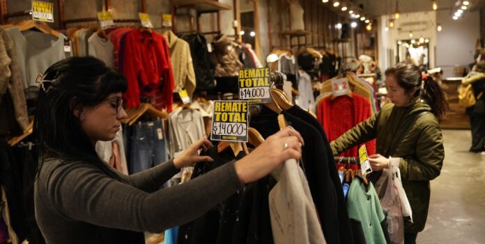La avenida Santa Fe -tradicionalmente reconocida por su oferta de moda y ropa de marca- se convirtió en un extenso pasillo de rebajas y promociones. Las vidrieras dicen “Ganga”, “Remate total” y hasta “70% off”.