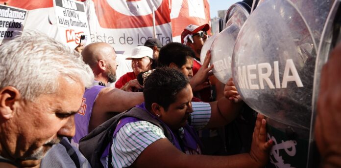 Ya al inicio de la maratónica sesión en Diputados, la zona del Congreso se encontraba vallada y rodeada por personal de Gendarmería. En ese marco, la ministra de Seguridad de la Nación, Patricia Bullrich, dio la orden de aplicar el protocolo antipiquetes que debutó el 20 de diciembre y se replicó parcialmente durante la movilización de la CGT del miércoles pasado.