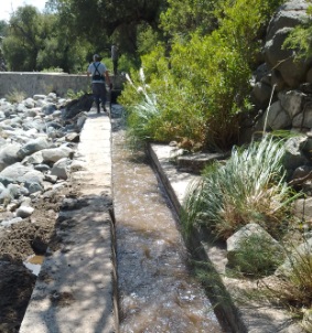 Personal de San Luis Agua en conjunto con la Municipalidad de San Francisco del Monte de Oro, trabajó intensamente el viernes 1º de marzo sobre 375 metros entre el azud, el canal y la cámara desarenadora.