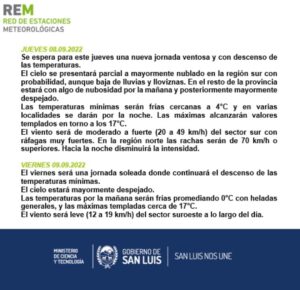 HomeClimaJornada ventosa con descenso de las temperaturas Clima Jornada ventosa con descenso de las temperaturas Por Redacción 8 septiembre, 2022 TagsPortada Previous articleTrata: investigan a un hombre denunciado por captar estudiantes de universidades argentinas y explotarlas sexualmente en una red en ChileNext articleIntensa búsqueda en Pilar: una mujer de 72 años lleva 16 días desaparecida Noticias Relacionadas Clima La semana comienza con mañanas frías y chance de heladas en varias localidades 6 octubre, 2025 Clima La semana termina con temperaturas de verano y pronóstico de un fin de semana inestable 3 octubre, 2025 Clima Octubre comienza con abundante nubosidad y temperaturas agradables 1 octubre, 2025 mas leido Un camión volcó en la ruta 147: el conductor resultó ileso 10 octubre, 2025 El Carrillo recibió un certificado de la OPS por su labor en vigilancia de infecciones respiratorias 10 octubre, 2025 San Luis: prisión preventiva para un joven acusado de incendiar una vivienda y amenazar a vecinos 10 octubre, 2025 El ministerio de Salud impulsa acciones en toda la provincia para la prevención del cáncer de mama 10 octubre, 2025 Load more