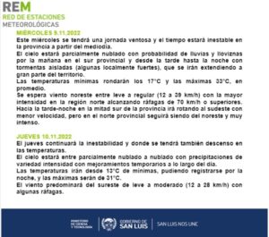 HomeClimaJornada ventosa e inestable con probables precipitaciones Clima Jornada ventosa e inestable con probables precipitaciones Por Redacción 9 noviembre, 2022 TagsPortada Previous articleEl gobernador recorrió obras y tuvo reunión con productores en El Trapiche y La FloridaNext articleEl Presidente inicia una gira para participar del Foro por la Paz y del G20 Noticias Relacionadas Clima La semana comienza con mañanas frías y chance de heladas en varias localidades 6 octubre, 2025 Clima La semana termina con temperaturas de verano y pronóstico de un fin de semana inestable 3 octubre, 2025 Clima Octubre comienza con abundante nubosidad y temperaturas agradables 1 octubre, 2025 mas leido Un camión volcó en la ruta 147: el conductor resultó ileso 10 octubre, 2025 El Carrillo recibió un certificado de la OPS por su labor en vigilancia de infecciones respiratorias 10 octubre, 2025 San Luis: prisión preventiva para un joven acusado de incendiar una vivienda y amenazar a vecinos 10 octubre, 2025 El ministerio de Salud impulsa acciones en toda la provincia para la prevención del cáncer de mama 10 octubre, 2025 Load more
