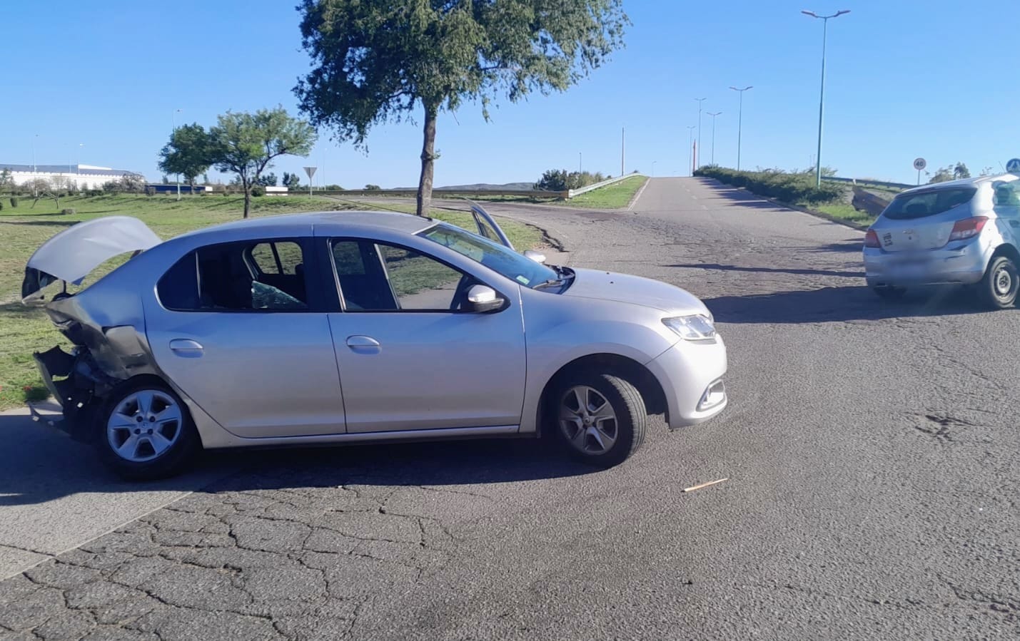 Juana Koslay: una mujer resultó lesionada tras un choque entre dos autos en la rotonda de avenida José Santos Ortiz y el puente de acceso a Donovan
