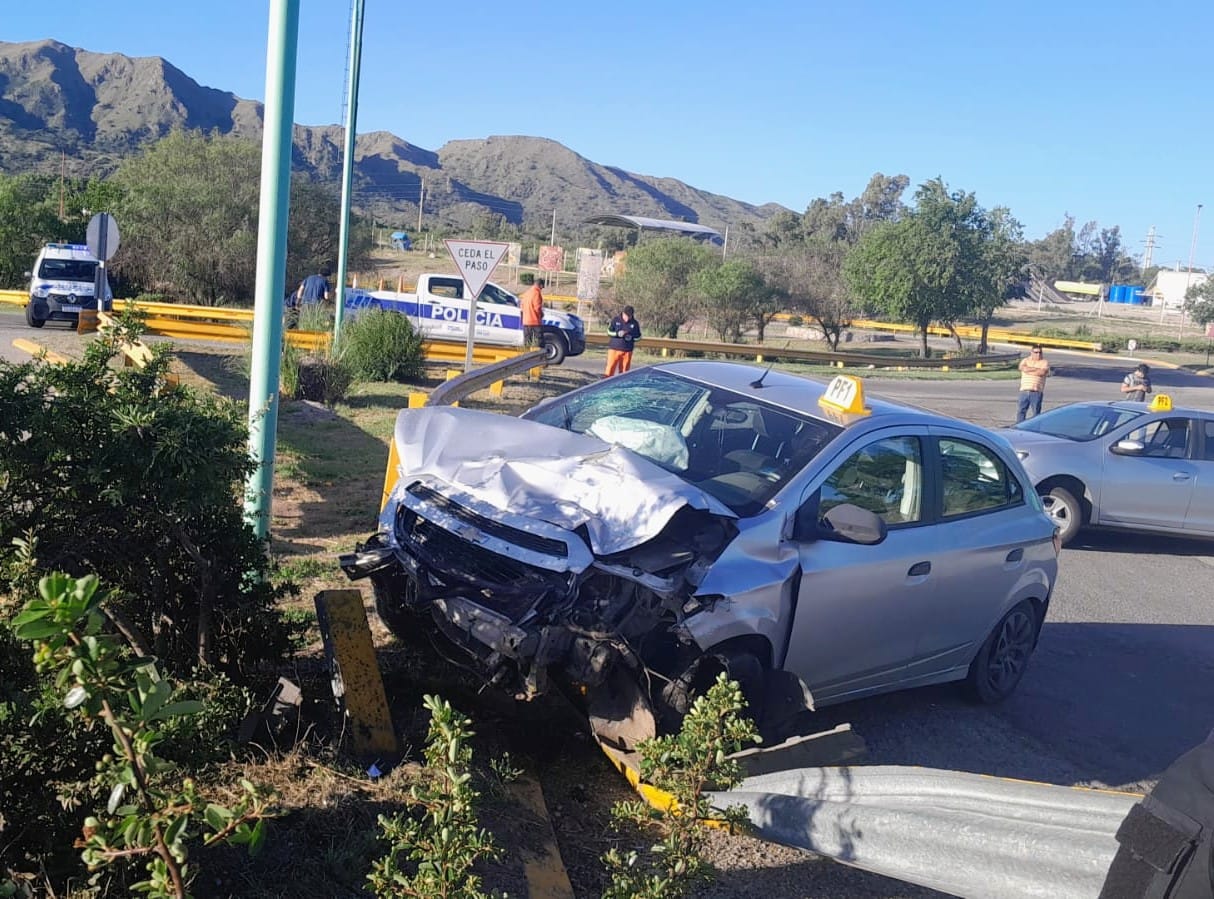 Tras esa colisión, el Chevrolet Joy impactó contra un guardarraíl, provocando daños en la estructura vial.