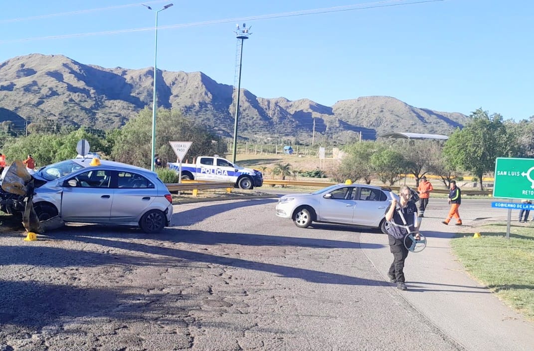 Desde la Comisaría Seccional 5° informaron que este domingo 16 de noviembre, alrededor de las 17:30, se produjo un accidente de tránsito en la rotonda de la avenida José Santos Ortiz (en dirección hacia Autopista Los Puquios) a la altura del puente de acceso a Donovan, en Juana Koslay.