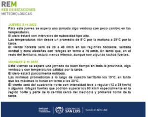 HomeClimaJueves ventoso con temperaturas cercanas a los 29°C Clima Jueves ventoso con temperaturas cercanas a los 29°C Por Redacción 3 noviembre, 2022 TagsPortada Previous articleDescubren cerca de la Tierra el asteroide “asesino de planetas”, el más grande en ocho añosNext articleEl Presidente cuestionó la liberación de los miembros de Revolución Federal Noticias Relacionadas Clima La semana comienza con mañanas frías y chance de heladas en varias localidades 6 octubre, 2025 Clima La semana termina con temperaturas de verano y pronóstico de un fin de semana inestable 3 octubre, 2025 Clima Octubre comienza con abundante nubosidad y temperaturas agradables 1 octubre, 2025 mas leido Un camión volcó en la ruta 147: el conductor resultó ileso 10 octubre, 2025 El Carrillo recibió un certificado de la OPS por su labor en vigilancia de infecciones respiratorias 10 octubre, 2025 San Luis: prisión preventiva para un joven acusado de incendiar una vivienda y amenazar a vecinos 10 octubre, 2025 El ministerio de Salud impulsa acciones en toda la provincia para la prevención del cáncer de mama 10 octubre, 2025 Load more