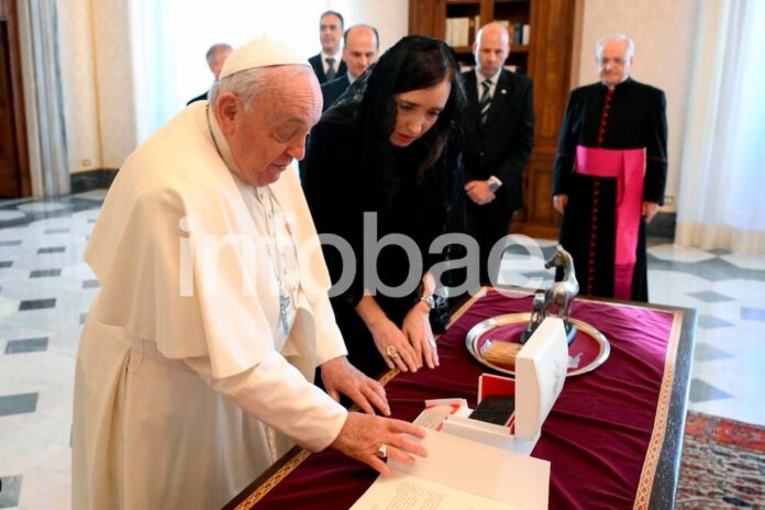 El encuentro tuvo lugar en la Biblioteca del Palacio Apostólico, donde el Sumo Pontífice recibe habitualmente a los jefes de Estado. Todo se desarrolló en un clima muy amable, hasta cariñoso. La Vicepresidente de la Nación conocía a Jorge Bergoglio, de sus tiempos como Arzobispo de Buenos Aires, y luego lo había visto una vez, ya como Papa, en 2014. Lo vio bien de salud y Francisco estuvo incluso de pie buena parte del encuentro, como se aprecia en las fotografías.