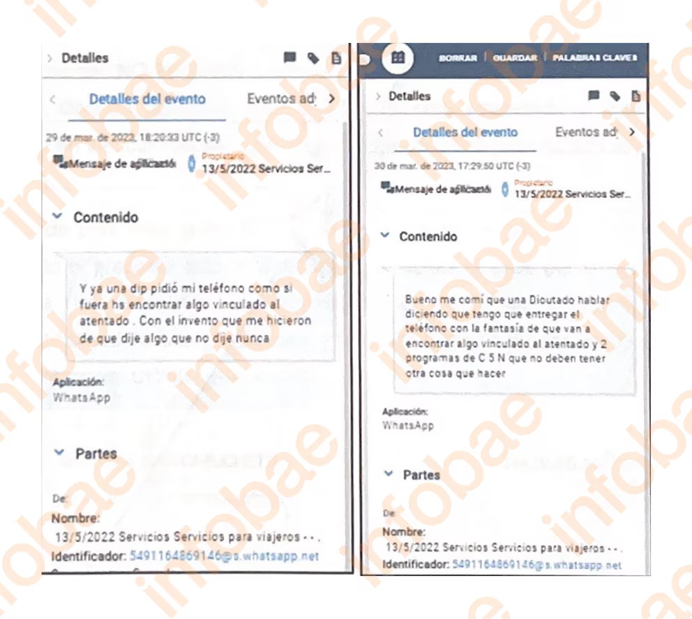 En total, los peritos rescataron 633.299 “eventos totales”, entre mensajes de texto, llamadas, imágenes, audios, datos eliminados, y correos electrónicos.