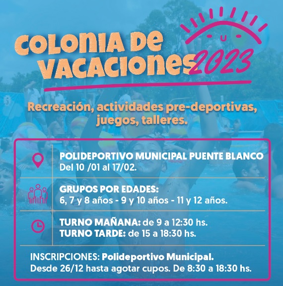 “El próximo lunes 26 de diciembre, a partir de las 9 horas estaremos inscribiendo en el Polideportivo Municipal. Los requisitos son muy simples y sencillos. Tienen que llevar la fotocopia de DNI del niño o niña a inscribir y la fotocopia del último control de la libreta de salud o en su defecto, un certificado de buena salud. Obviamente, los tutores completarán una planilla de manera presencial, en el predio”, explicó Díaz.