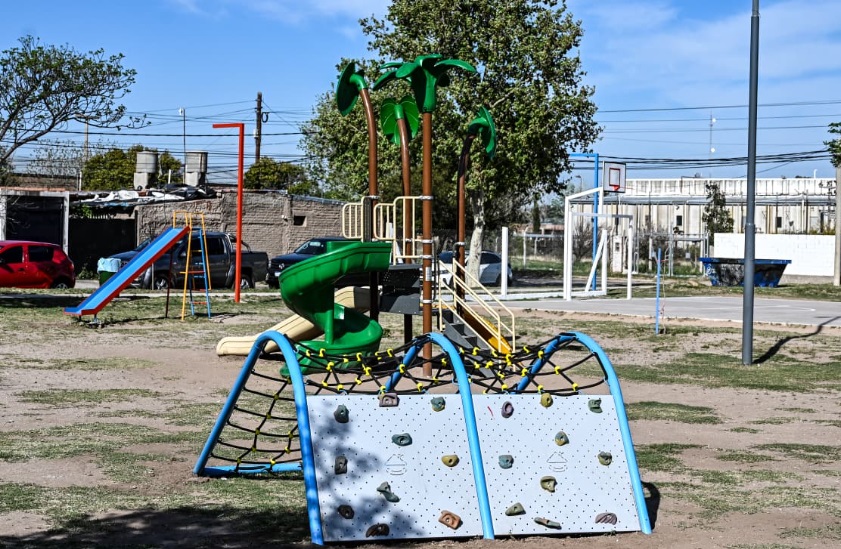 La obra en el barrio Libertad incluyó la instalación de nuevos juegos, como un mangrullo tipo selva con toboganes y trepadores, una posta de cuatro estaciones, mobiliario urbano y equipamiento inclusivo, además de trabajos de forestación, recambio de luminarias, reparación de veredas, nueva señalización vial y restauración del espacio dedicado al santo patrono del barrio. Asimismo, se designó a un placero, Nicolás, para colaborar con el cuidado diario.