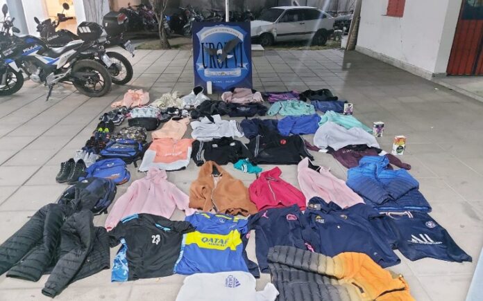 Los oficiales incautaron pantalones, remeras, buzos, camperas, mochilas, zapatillas de distintos modelos, medias, un teléfono celular y una antena de wi-fi. Todos estos bienes estarían valuados en medio millos de pesos.