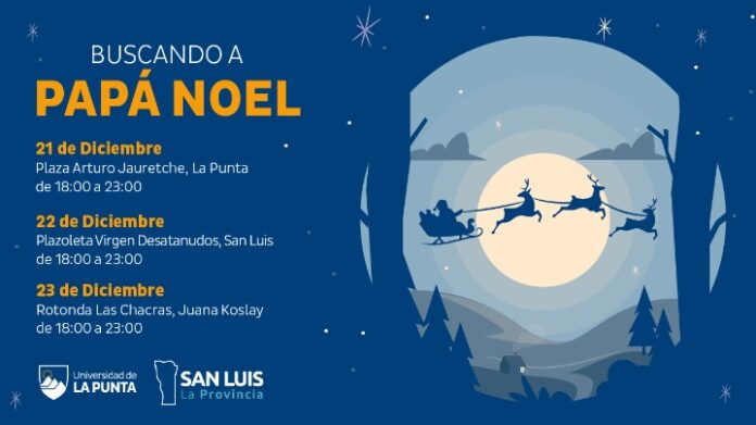 La Universidad de La Punta despide el año con “Buscando a Papá Noel”, una iniciativa itinerante que incluye todas las propuestas de la ULP al alcance de los puntanos. El 21 de diciembre los stands de robótica, ajedrez, sumo robot, los telescopios de observación diurna y nocturna e impresoras 3D estarán en la Plaza Arturo Jauretche de La Punta. El viernes 22 se trasladarán a la Plazoleta Virgen Desatanudos de San Luis y el sábado 23 hacen el cierre en la Rotonda Las Chacras de Juana Koslay, con el Coro ULP. La jornada en cada punto inicia a las 18:00 y finaliza a las 23:00.