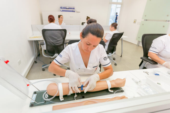 Karina Matera explicó que el edificio cuenta con una sala de briefing, un área técnica, un área de gestión, un taller de habilidades, un área de adultos, un área de maternidad, una sala de pediatría y neonatología. En estos espacios están ubicados los seis simuladores humanos, maniquíes de alta tecnología, donde los estudiantes podrán plantear escenarios típicos de la rutina médica: partos, colocación de acceso venoso, administración de planos de hidratación y extracción de sangre, entre otros.