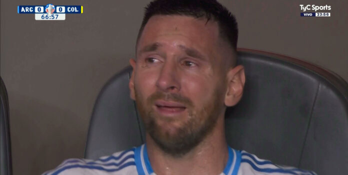 Lionel Messi y el llanto desconsolado por tener que salir en la final entre Argentina y Colombia