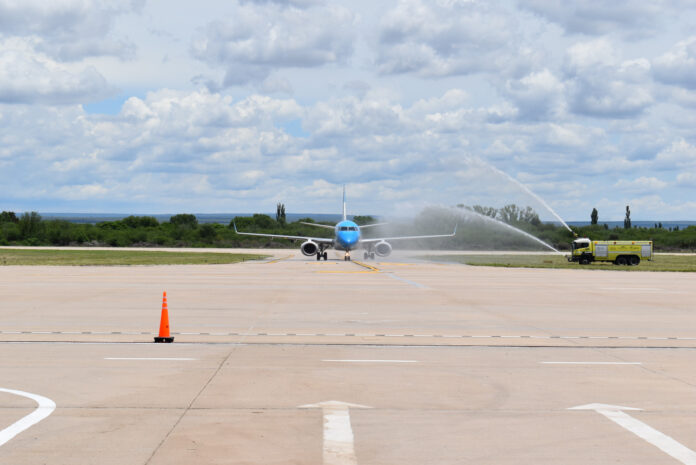 Llegó el primer vuelo regular de Aerolíneas Argentinas al Aeropuerto Valle del Conlara