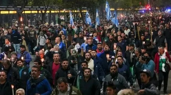 En la manifestación, donde los asistentes portaron antorchas y velas que permanecieron encendidas durante casi toda la ceremonia, hubo militantes de gremios de la CGT y la CTA, como Camioneros, ATE (estatales) y Smata (mecánicos).