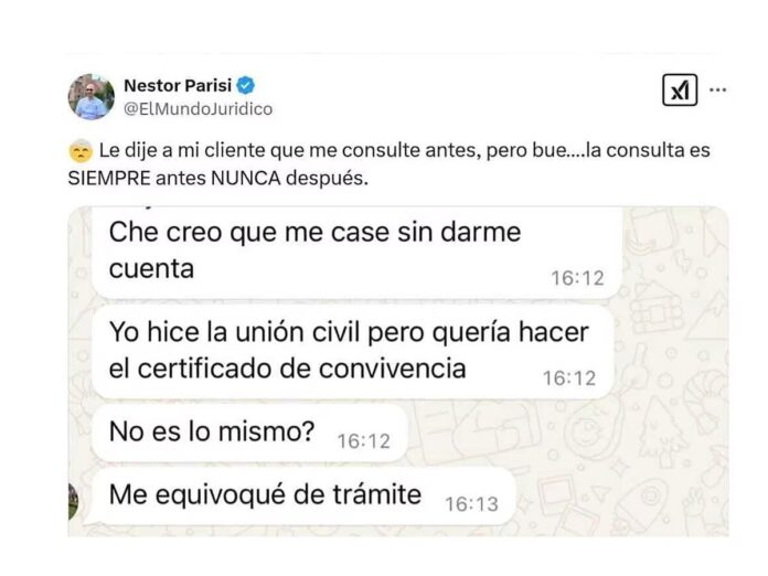 “Me casé por error”: el desopilante tuit que se volvió viral y la reacción de su abogado cuando le escribió para pedirle ayuda