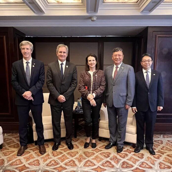 Diana Mondino en su viaje a China en reuniones en Shangai con Santiago Bausilli